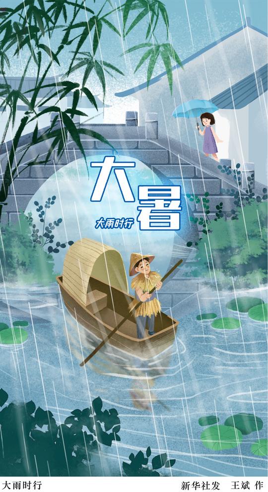 元代文人吴澄编著的《月令七十二候集解》记载:“大暑,六月中。暑,热也,就热之中分为大小,月初为小,月中为大,今则热气犹大也。”“暑”是炎热的意思,相对于小暑,大暑更加炎热,“湿热交蒸”在此时节到达顶点。民俗有云,“小暑不见日头,大暑晒开石头”。