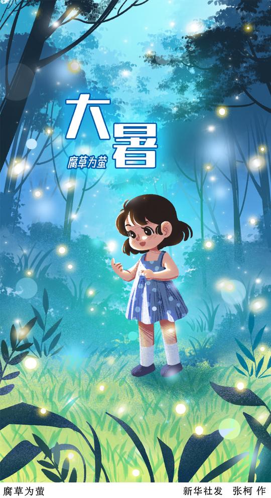 古人认为,大暑有三候:一候腐草为萤,二候土润溽暑,三候大雨时行。这一时节,萤火虫卵化而出,古人误认为萤火虫由腐草变化而成;与此同时,天气闷热,土地潮湿,还常有雷雨出现。